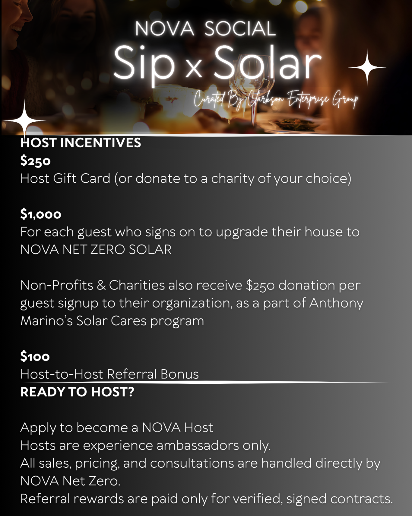 Sip & Solar Is For Anyone That Likes Hosting Gatherings. You Don't Need A Big Group Of Friends & Family. You Need People That Believe In Possibilities, Have An Open Mind, And Want To Save Money